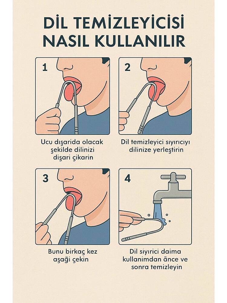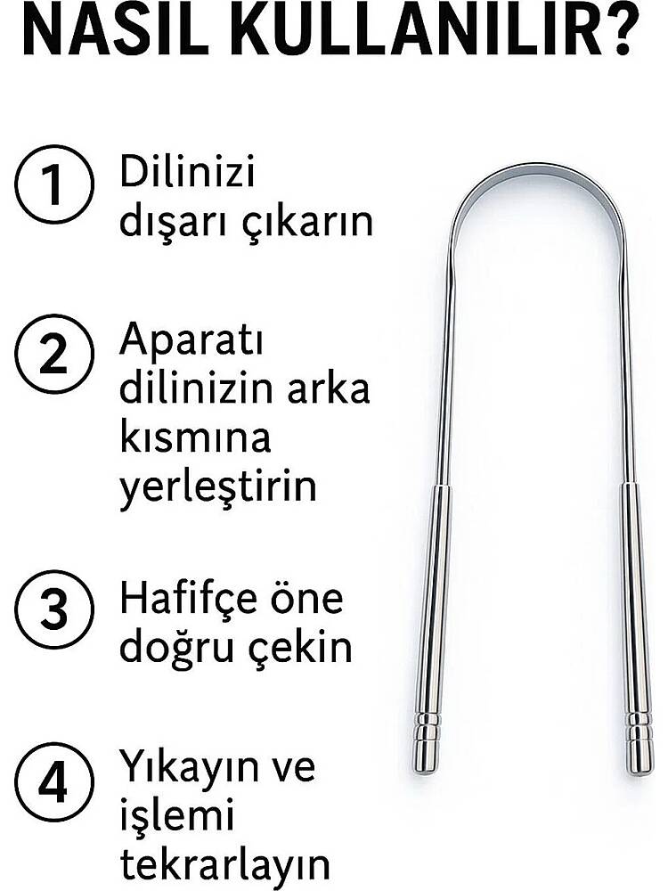 Kullanım önerisi: Diş fırçalamadan sonra veya ağız bakım rutininizde dilinizi nazikçe temizleyin. Sonrasında ağzınızı durulayın. Düzenli kullanım için her gün aynı rutinde uygulayabilirsiniz.