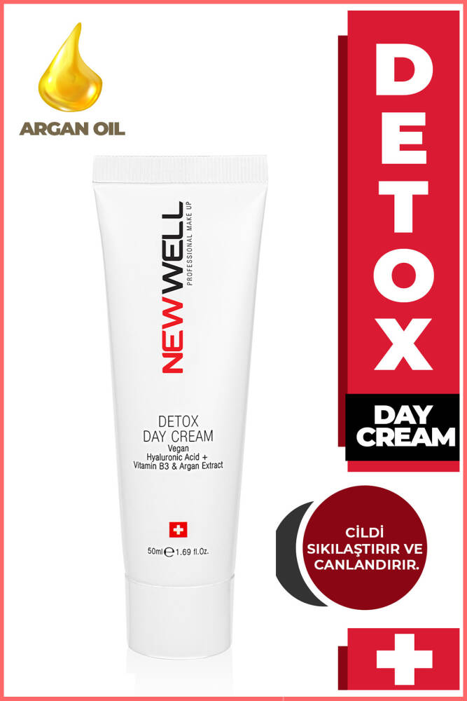 New Well Detox Gündüz Bakım Kremi Argan Özlü: İçersindeki özel aktifler Vegan hyalüronik Asit B3 Vitamini ve dünyanın en eski ağacından elde edilen Argan extractı sayesinde cildi canlandırır sıkılaştırır cilt dokusunanemlilik ve dolgunluk kazandırır . ; Cildi güneşin zararlı etkilerine karşı korur .Tüm cilt tiplerine uygundur. ; Kullanım Şekli: Kullanmak istedğiniz bölgeyi temizledikten sonra elinize bir miktar krem alarak dairesel haraketlerle masaj yapınız. ; Daha etkili sonuç için günde 2 kez uygulayabilirsiniz.....;