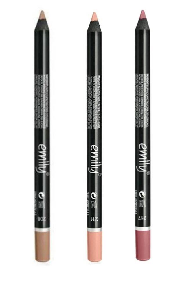 Emıly Dudak Kalemi 3'lü Set No: 208; 211; 217 Yoğun renk pigmentlerinin özelliği ile dudak makyajında uzun süren kalıcı çizgiler yarat! Ambalajı açılan ürünlerin iadesi yapılmamaktadır; ;;