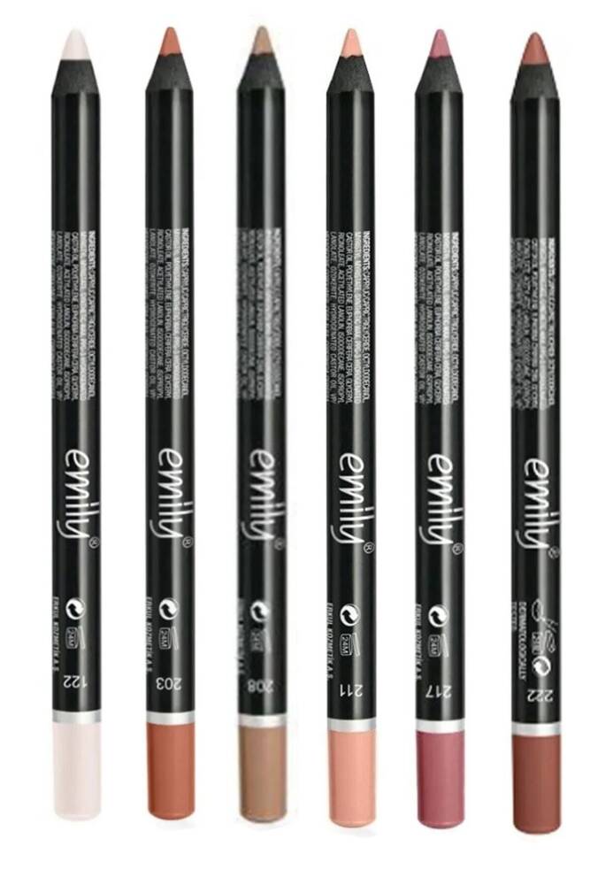 Emıly Dudak Kalemi 5'li Set No: 122 - 203 - 208 - 211 - 217 - 222 Yoğun renk pigmentlerinin özelliği ile dudak makyajında uzun süren kalıcı çizgiler yarat! Ambalajı açılan ürünlerin iadesi yapılmamaktadır. ; 122 nolu kalem göz kalemi 203-208-211-217-222 nolu kalemler dudak kalemidir.
