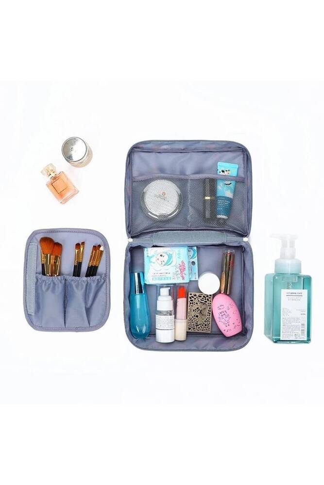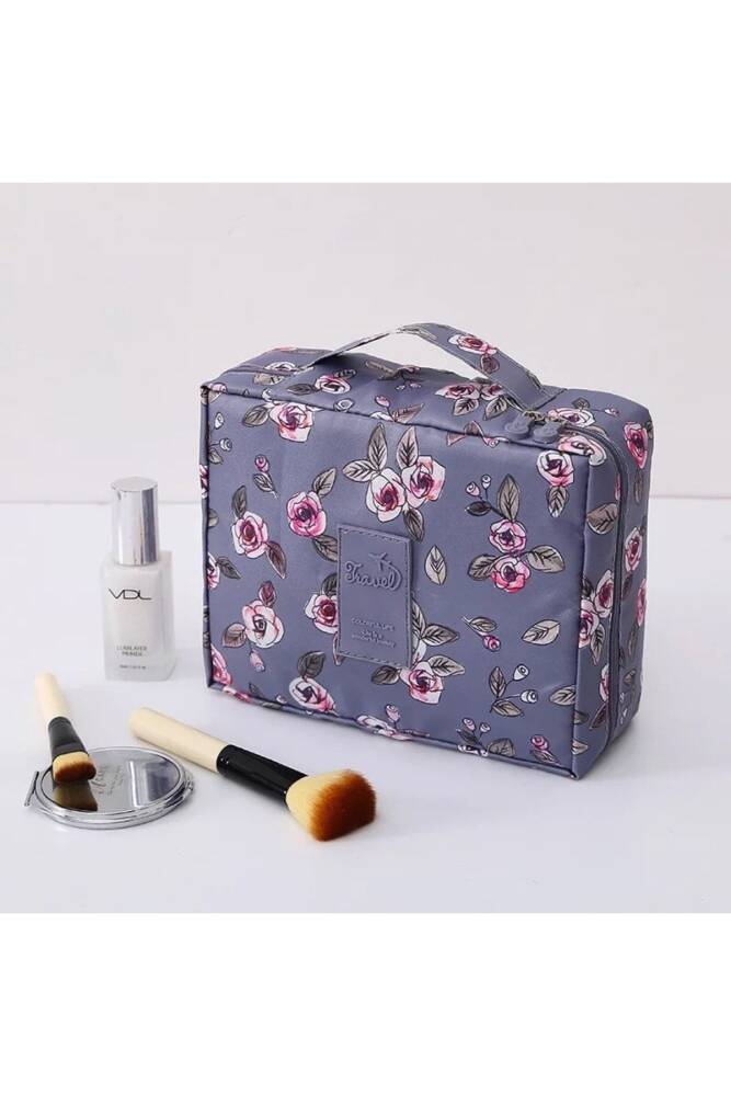 Gül desenli seyahat ve makyaj çantası çok amaçlı kullanımı mevcuttur; ÖLÇÜLERİ 22×18×8 ambalajlı üründür;