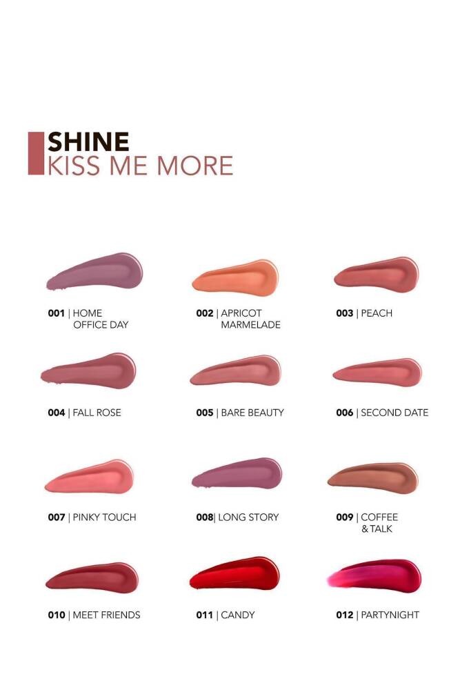Flormar Kalıcı Parlak Likit Ruj - Shine Kiss Me More LLS Hem besleyici içeriğiyle dudaklarına yoğun nem kazandıracak, hem yüksek pigmentiyle dudaklarına yoğun renk verecek hem de parlak bitişiyle kusursuz dudaklara sahip olmanı sağlayacak bir ruj olsa nasıl olurdu? Merak etme, Flormar çoktan yaptı! İşte karşında: Flormar Kalıcı Parlak Likit Ruj - Shine Kiss Me More LLS! Flormar’ın bu zamana kadarki en parlak ruju olan Shine Kiss Me More LLS, günün her anında çekici dudaklara sahip olmayı mümkün kılıyor. ; Hadi, 4 farklı renk seçeneği arasından seçimini yap ve sen de bu ışıltılı rüyaya hemen katıl! Flormar Kalıcı Parlak Likit Ruj - Shine Kiss Me More LLS Nedir? Flormar Kalıcı Parlak Likit Ruj - Shine Kiss Me More LLS, besleyici özelliğe sahip parlak bitişli bir kremsi ruj çeşididir. ; Işıltılı dokuya ve metalize ambalaja sahiptir. ; Flormar Kalıcı Parlak Likit Ruj - Shine Kiss Me More LLS Hangi Özelliklere Sahiptir? Yoğun pigmentlidir. ; Kremsi dokuludur. ; Parlak bitişlidir. ; Formülünde murumuru yağı ve hyaluronik asit bulunur. ; Vanilya aromalıdır. ; 24 saat nemlendirme özelliğine sahiptir. ; Yapışkanlık hissi bırakmaz. ; Özel eğimli aplikatörü mevcuttur. ; Uzun süre kalıcı etki sunar. ; Flormar Kalıcı Parlak Likit Ruj - Shine Kiss Me More LLS’i Tercih Etmek için 4 Neden Flormar Shine Kiss Me More parlak ruj, içeriğindeki murumuru yağı ve hyaluronik asitle dudakları 24 saat boyunca nemlendirir. ; Bu sayede dudakların günün her anında bakımlı ve pürüzsüz görünmesini mümkün kılar. ; Vanilya aromasıyla keyifli bir kullanım sunar. ; Turuncu, bordo, kırmızı ve pembe tonlarındaki renkleriyle her cilt tonuna ve ten rengine uyum sağlar. ; Kremsi dokusu sayesinde dudaklarda zahmetsiz bir şekilde dağılır. ; Aynaya bile gereksinim duymadan pratik bir şekilde uygulanabilir. ; Göz alıcı yoğun renkleri, parlak bitişi ve uzun süreli nem etkisiyle günlük makyajlardan gece makyajlarına kadar tüm görünümlerde kullanılabilir. ; Flormar Kalıcı Parlak Likit Ruj - Shine Kiss Me More LLS Nasıl Uygulanır? Flormar Kalıcı Parlak Likit Ruj’u özel eğimli fırçasıyla dudaklarının ortasından kenarlarına doğru uygulamalısın. ; Özel tasarlanmış fırça sayesinde ruju dudaklarına istediğin yoğunlukta sürebilirsin. ; Dilersen ruju sürmeden önce dudak çerçeveni dudak kalemiyle belirginleştirebilir ve çok daha kusursuz bir uygulama yapabilirsin. ; Flormar Kalıcı Parlak Likit Ruj - Shine Kiss Me More LLS için Kullanım Tüyosu Flormar Shine Kiss Me More LLS parlak rujun dudaklarında daha kusursuz görünmesi için uygulama öncesinde nemlendirici lip balm sürebilirsin.;