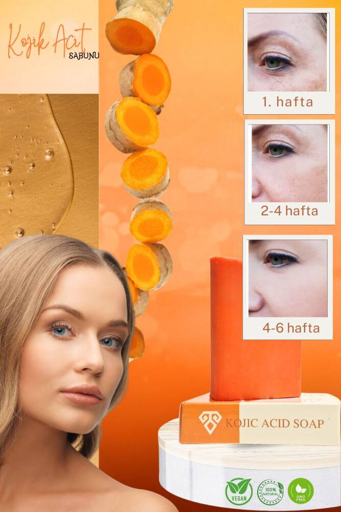 Cildi temizler ve tonik etkisi vardır.; Cildi onarır, antiseptiktir.; CiItteki renk farklılıklarını giderir, canlılık kazandırarak gerginleştirir.; ZerdeçaIın antioksidan etkisinin, C vitamininden ve E vitamininden daha kuvvetli olduğu, uzmanlar tarafından belirtilmektedir.; Orijinal Kojik Sabunu ile hiperpigmentasyon, güneş ve ve diğer lekelerle mücadele eden gerçek kojik asit sabunu parlatma deneyimini yaşayın.; Profesyonel güçlü kojik sabunumuzla cilt problemlerinizden kurtulun.; kolajen etkisi ve hiyaluronik asitin yardımı ile cildinizi daha parlak ve nemli hissedin