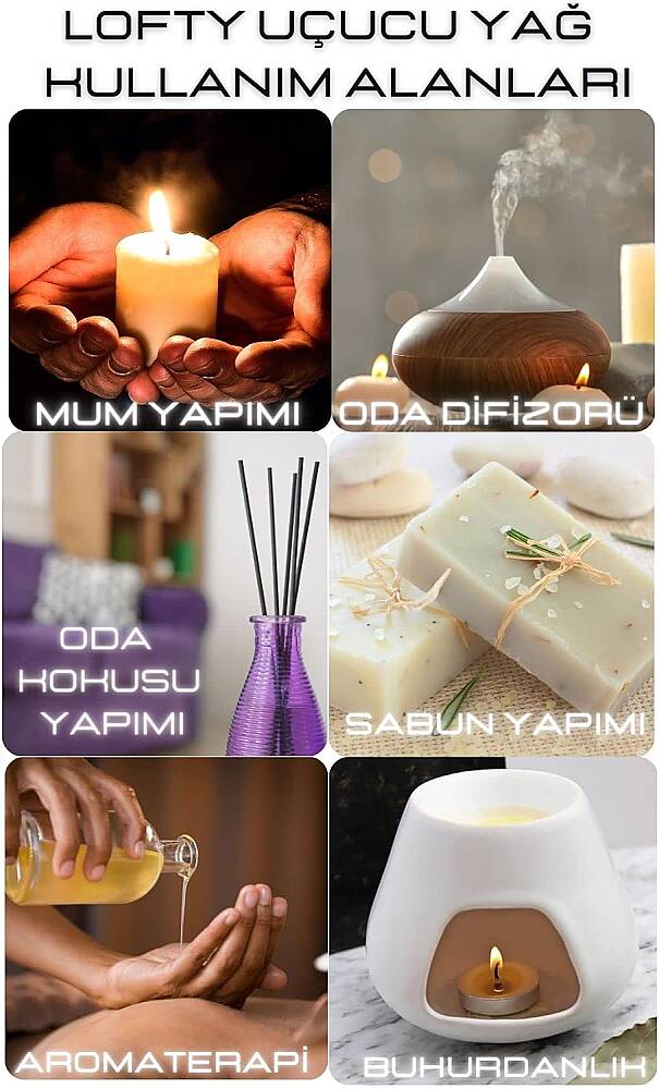 Tüm Buhurdanlıklar: Lofty Esansiyel Uçucu Yağ Esansı LOFTY DOĞAL UÇUCU YAĞ, Lofty Kalitesi doğadan sizlerle Ürünlerimiz'de msds raporları arkasındaki qr kodda mevcuttur; Esansiyel Yağ Kullanım Alanları: Buhurdanlık, Oda Difüzörlerin'de, Küre'de, Hava Nemlendiriciler'de Mum, Sabun, Oda Kokusu, Kokulu Taş Yapımında Kullanılabilir; Ürünümüz Doğal seyreltilmemiştir; Özel Ürünümüz Koku Yağı Olarak Taş Yağı olarak'da satılmaktadır; Koku Amacıyla Yaplıan Tüm Hobi Ürünlerin'de Kullanılabilir Paraben, sülfat, SLES, SLS, sentetik boya ve koruyucu içermez; Doğa dostudur, Vegan kullanımına uygundur ve hayvanlar üzerinde test edilmemiştir.