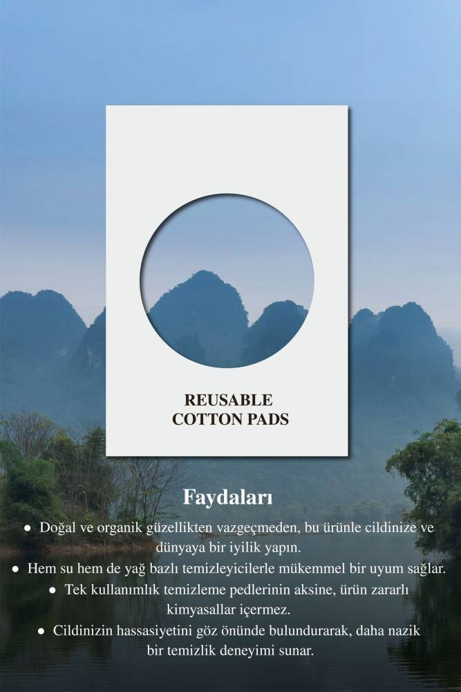 Yeniden kullanılabilir %100 Organik Pamuk Yıkanabilir Makyaj Temizleme Pedi (3 Adet) Tamamen %100 organik pamuktan üretilmiştir ve yumuşak, emici bir yapıya sahiptir.; Doğal ve sürdürülebilir bir seçim sunar.; Yumuşak dokusu sayesinde cildiniz için zararlı olabilecek kimyasallar içeren tek kullanımlık temizleme pedlerine göre daha naziktir.; 100% organik pamuk temizleme pedi, su veya yağ bazlı temizleyiciler ile birlikte kullanılmak üzere tasarlanmış olup cilt bakım rutininiz için harika bir yardımcıdır.; Yeniden Kullanılabilir %100 Organik Pamuk Yıkanabilir Makyaj Temizleme Pedi ile cildinize ihtiyaç duyduğu bakımı verin ve doğal güzelliğinizi ortaya çıkarın! Islak kullanım: Su veya yağ bazlı temizleyici ile birlikte kullanmak için; Ürünü su ile ıslatın ; Fazla suyunu sıkarak temizleme pamuğunu nemli bir hale getirin ; Kullandığınız temizleyici ile birlikte makyajı çıkarmak için dairesel hareketler ile cildinizi temizleyin ; Maske cilt bakım adımı ile birlikte kullanmak için; Ürünü su ile ıslatın ; Fazla suyunu sıkarak temizleme pamuğunu nemli bir hale getirin ; Maskeyi nazikçe çıkarmak için dairesel hareketler ile cildinizi temizleyin ; Kuru kullanım: Temiz cilde uygulanan tonikleme işlemi için kuru temizleme pamuğuna tonik dökerek tonikleme adımını gerçekleştirin.; ; Kullanım sonrası ürünü elde yıkayarak temizleyin ve kurumaya bırakın.; Kuruduktan sonra defalarca kez kullanıma uygundur.; ; İçerik: %100 Organik Pamuk