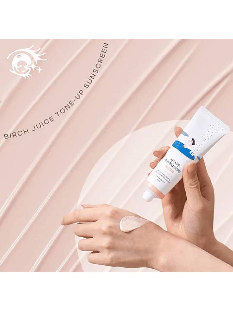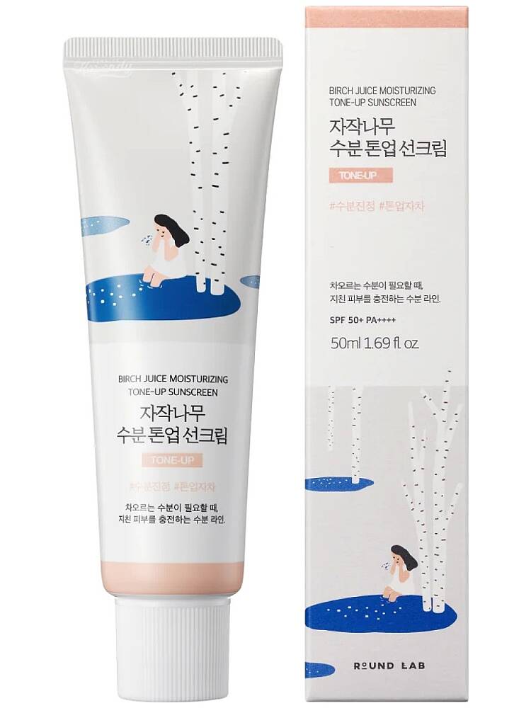 Round Lab Birch Juice Moisturizing Tone‑Up Sunscreen SPF 50+ PA++++, huş suyu ile zenginleştirilmiş nemlendirici ve hafif dokulu bir güneş kremidir. Göze çarpan “peachy pink” ton‑up etkisi sunar, cildi aydınlatır ve makyaj altı pürüzsüz bir baz hazırlar. Su bazlı formülü, güneşin zararlı ışınlarını engellerken cildi nemlendirir, dengeleyici ve ışıltılı bir görünüm kazandırır. Mineral içermeyen kimyasal filtrelerle formüle edilmiş, reef‑safe ve hassas ciltlerle de uyumludur.