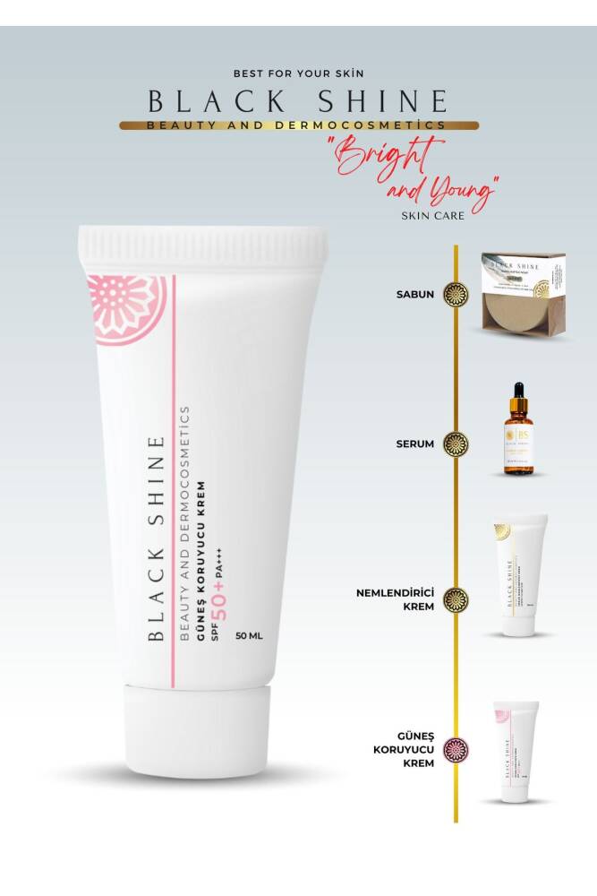 Black shıne spf 50+ yüz güneş kremi nemlendiricili etkili yüksek koruyucu 50ml •kullanım şekli / ınsructıon manual Güneşe çıkmadan 20 dakika önce tüm yüzünüze yeterli ve eşit miktarda dağıtarak uygulayınız. ; Yüksek korumalı renkli yüz güneş kreminin koruyucu özelliğinin devamlılığı için 2 saatte bir yenilenmesi, terleme ya da su ile temasından sonra ise tekrar uygulanması gerekir. ; •uyarılar: Haricen kullanım içindir. ; Göz çevresine uygulamayın. ; Göze teması halinde bol su ile durulayın. ; •ıngredients/içindekiler: Aqua,ethylhexyl,methoxycinnamate,octocrylene,glyceryl stearate,glycerin,butyl methoxydibenzoylmethane, cyclopentasiloxane,stearic acid,propylene glycol, titanium dioxide, panthenol, dimethicone, ubiquinone, tocopheryl acetate, ethylhexylglycerin, phenoxyethanol, parfum,sodium hyaluronate, disodium edta.;